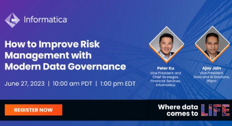 Join Ajay Jain, Vice President of Data and AI Solutions at Wipro and Peter Ku, Vice President and Chief Strategist for Banking and Financial Services at Informatica to learn how stay ahead of regulations and the competition.
